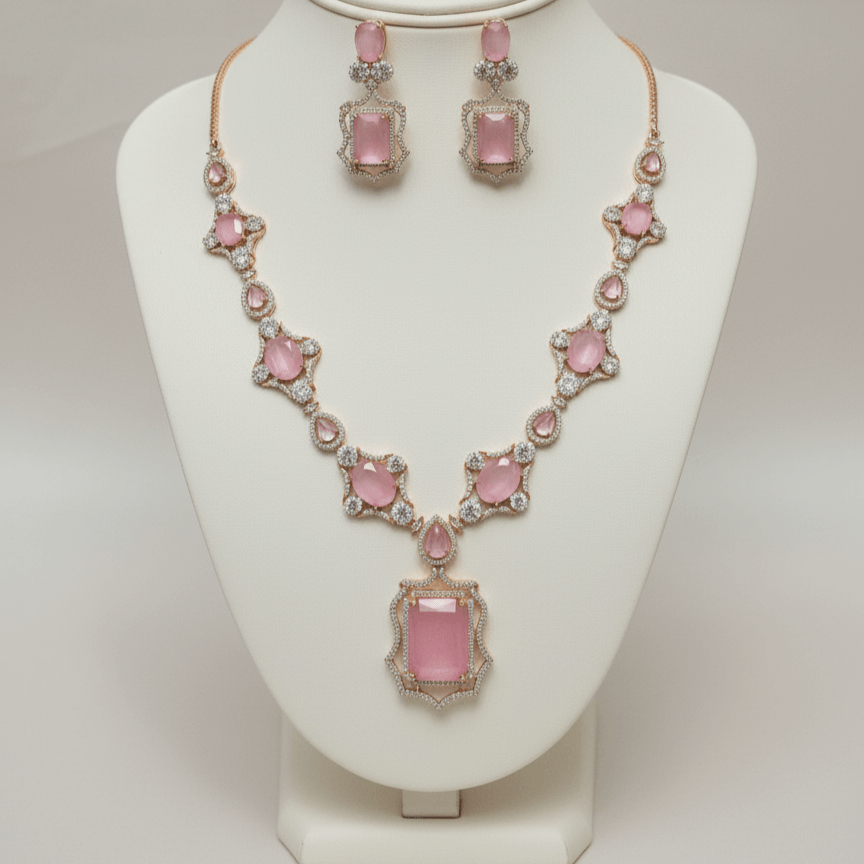Blush Empress Rose Gold Necklace Set | Luxury Pink Stone Bridal Jewellery – Ammaira Jewelz