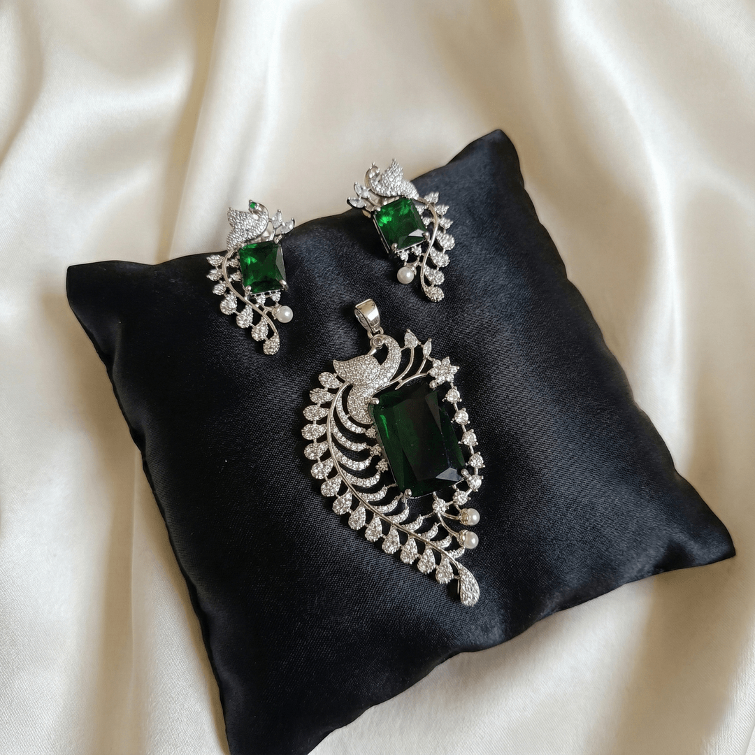 Emerald Green AD Peacock Pendant Set | Ammaira Jewelz