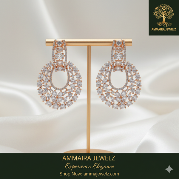 Ammaira's Aqua Dream Drop E...Ammaira's The Grand Gala Hoops: All-Diamond Rose Gold Chandeliers