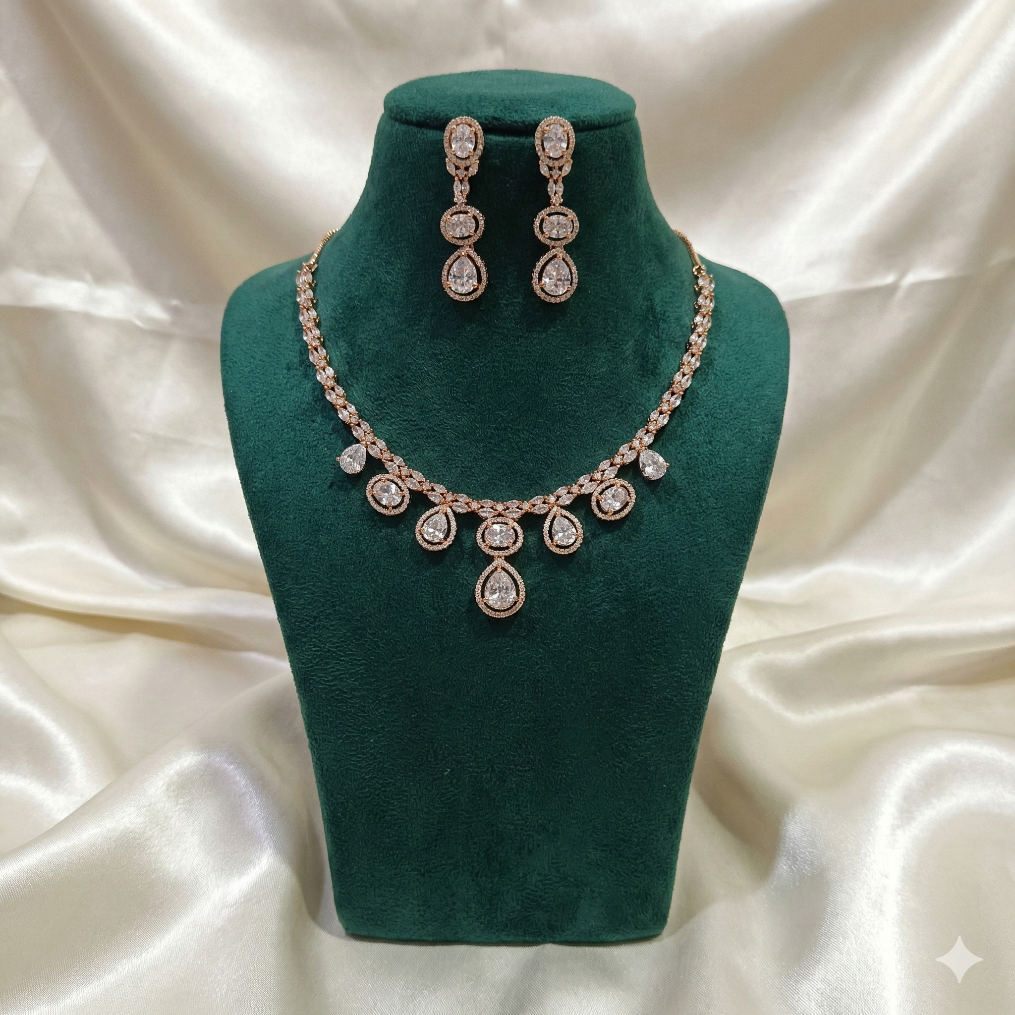 Rose Gold Multi Pear Diamond Necklace & Drop Earrings Set | Ammaira Jewelz