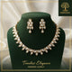 Elevate your evening attire with the epitome of sophistication from Ammaira Jewelz. This exquisite necklace set features a delicate chain of handcrafted, leaf-shaped Polki motifs that cascade gracefully into a stunning, oversized emerald-cut crystal pendant. Surrounded by a halo of micro-pave stones and finished in luxe gold plating, this set includes matching drop earrings to complete the look. Whether paired with a modern gown or a classic saree, this design captures the essence of "Timeless Elegance." Shop this statement piece today to add a touch of royal charm to your jewelry collection.