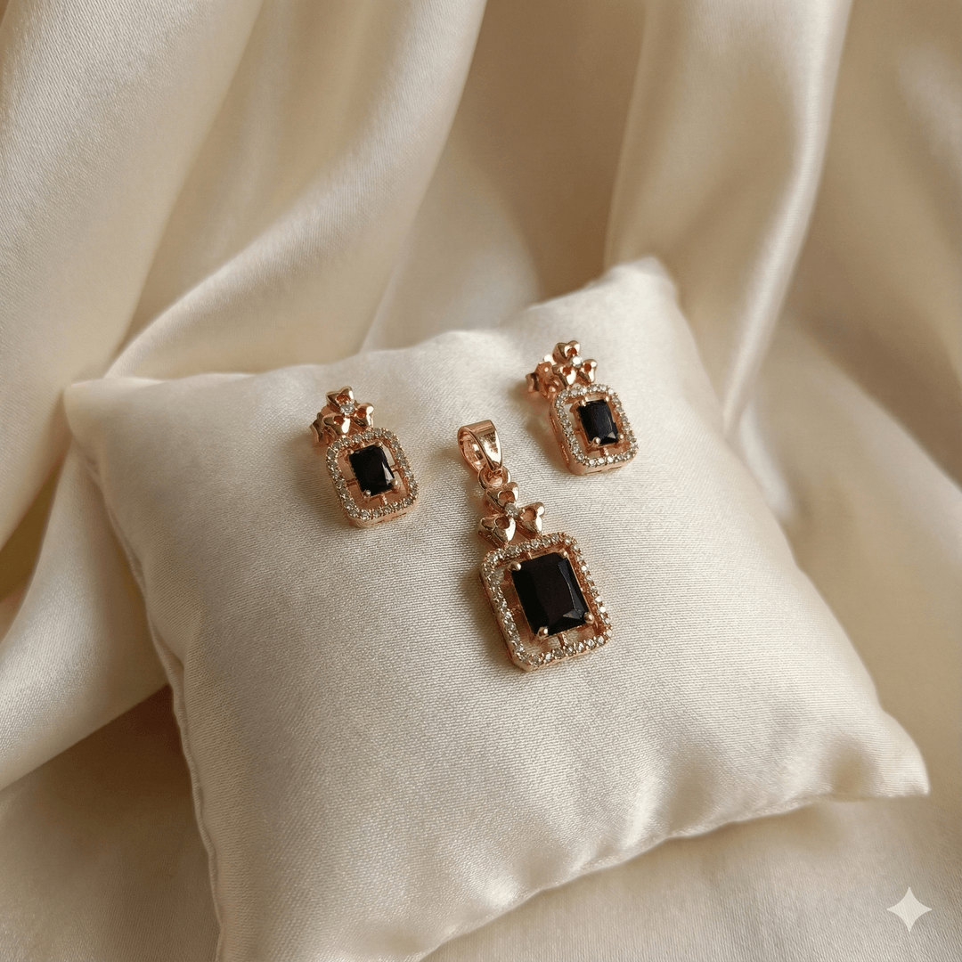 Elegant Black Stone Rose Gold Set | Ammaira Jewelz