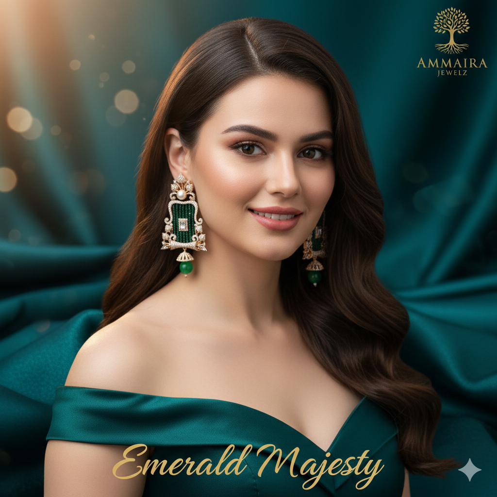 Embrace your royal moment. Shop The Emerald Majesty Drops from Ammaira Jewelz and experience elegance.