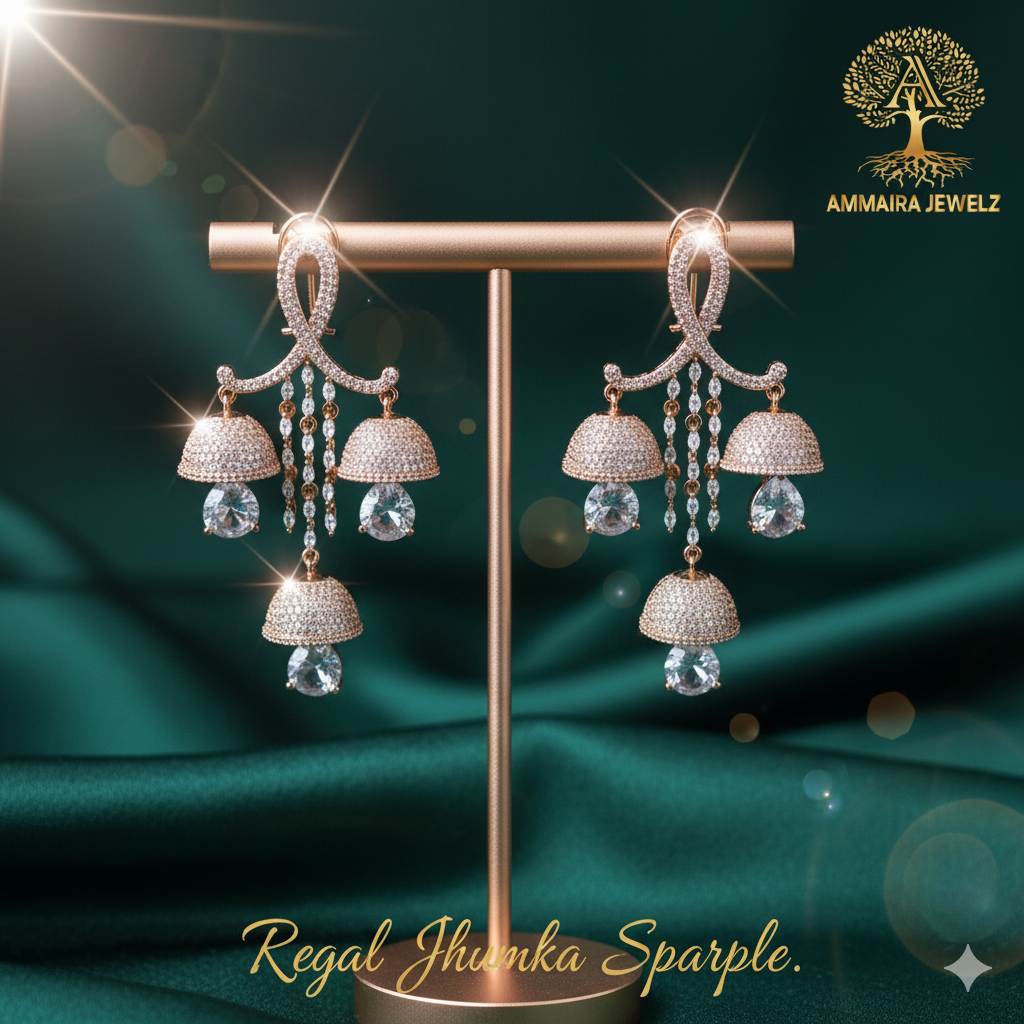 Ammaira's REGAL JHUMKA SPARKLE: Cascading Bell Chandelier Earrings