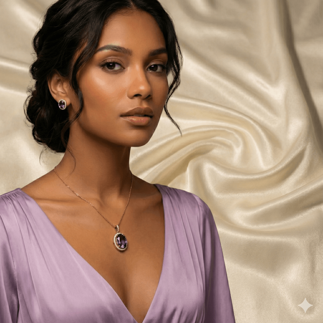 Rose Gold Amethyst Oval Pendant Set | Ammaira Jewelz