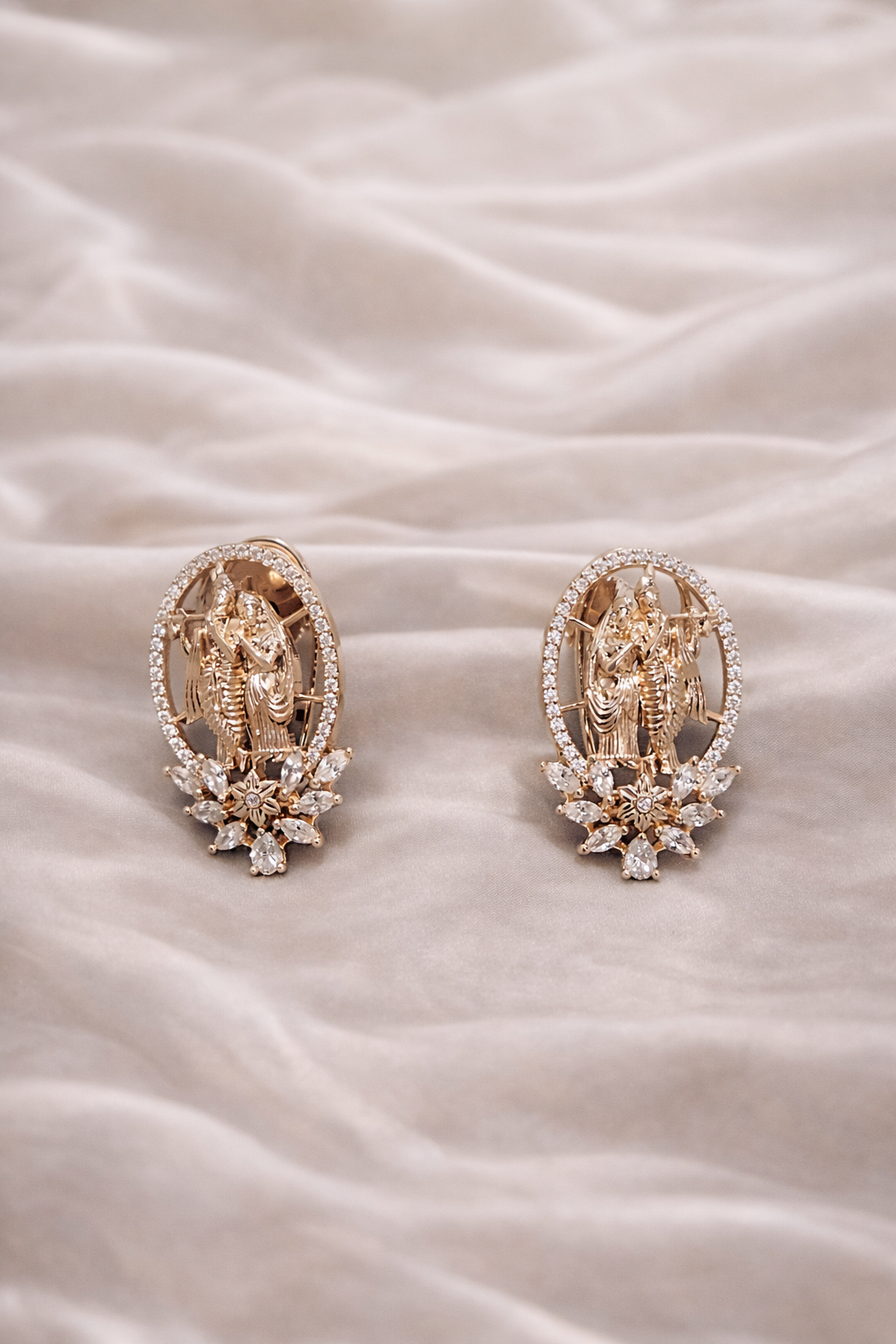 Rose Gold Divine Radha Krishna Diamond Pendant & Earrings Set | Ammaira Jewelz