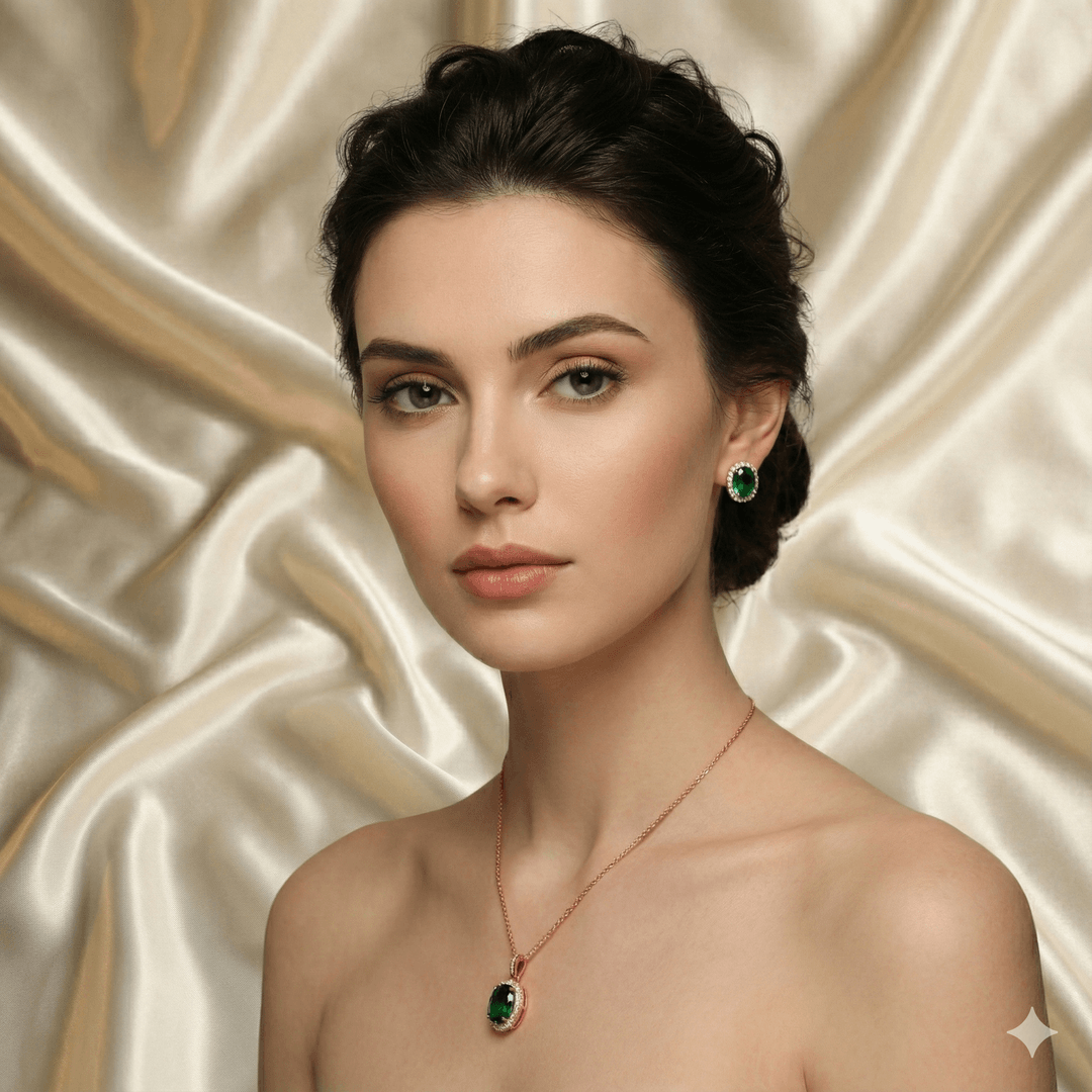 Rose Gold Emerald Oval Pendant Set | Ammaira Jewelz